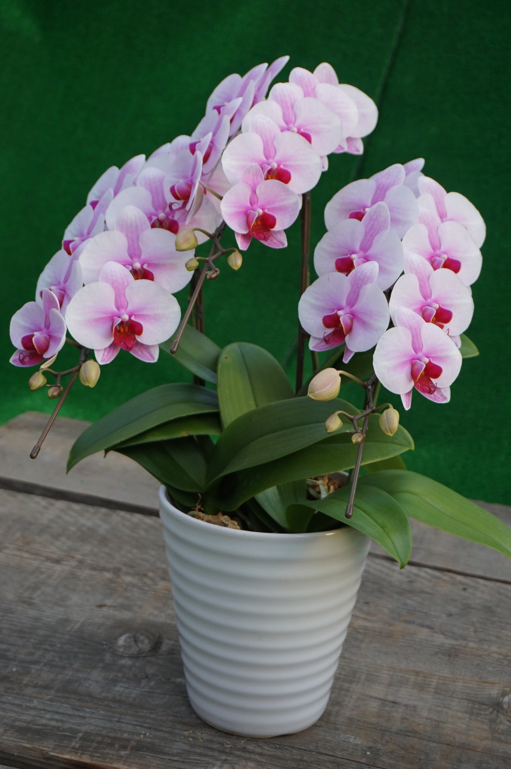 中央が濃いピンクの白 ミディ胡蝶蘭『さくら姫』は、高さ55㎝程でテーブルの上等置く場所を選ばず置ける高さで、色んな場面でのギフトにおすすめです!女性の方に好まれる色合いで、紅白なので御祝にはもちろん母の日の贈り物やお誕生日にもオススメです。